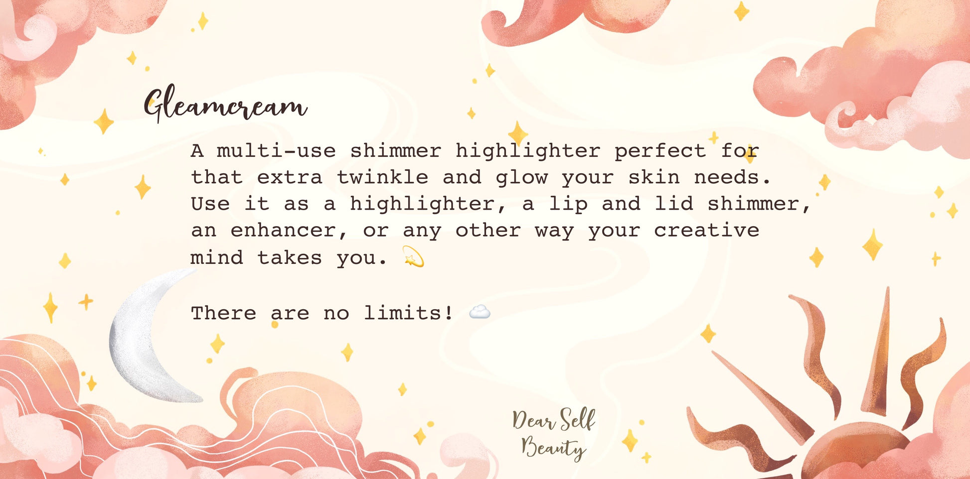 Gleamcreams proudly feature celestial designs because nothing is brighter than the things we see beyond our sky. ☁️ Much like these celestial bodies, we want our Gleamcreams to be one’s own stars which they can use to make their beauty shine! ✨💫