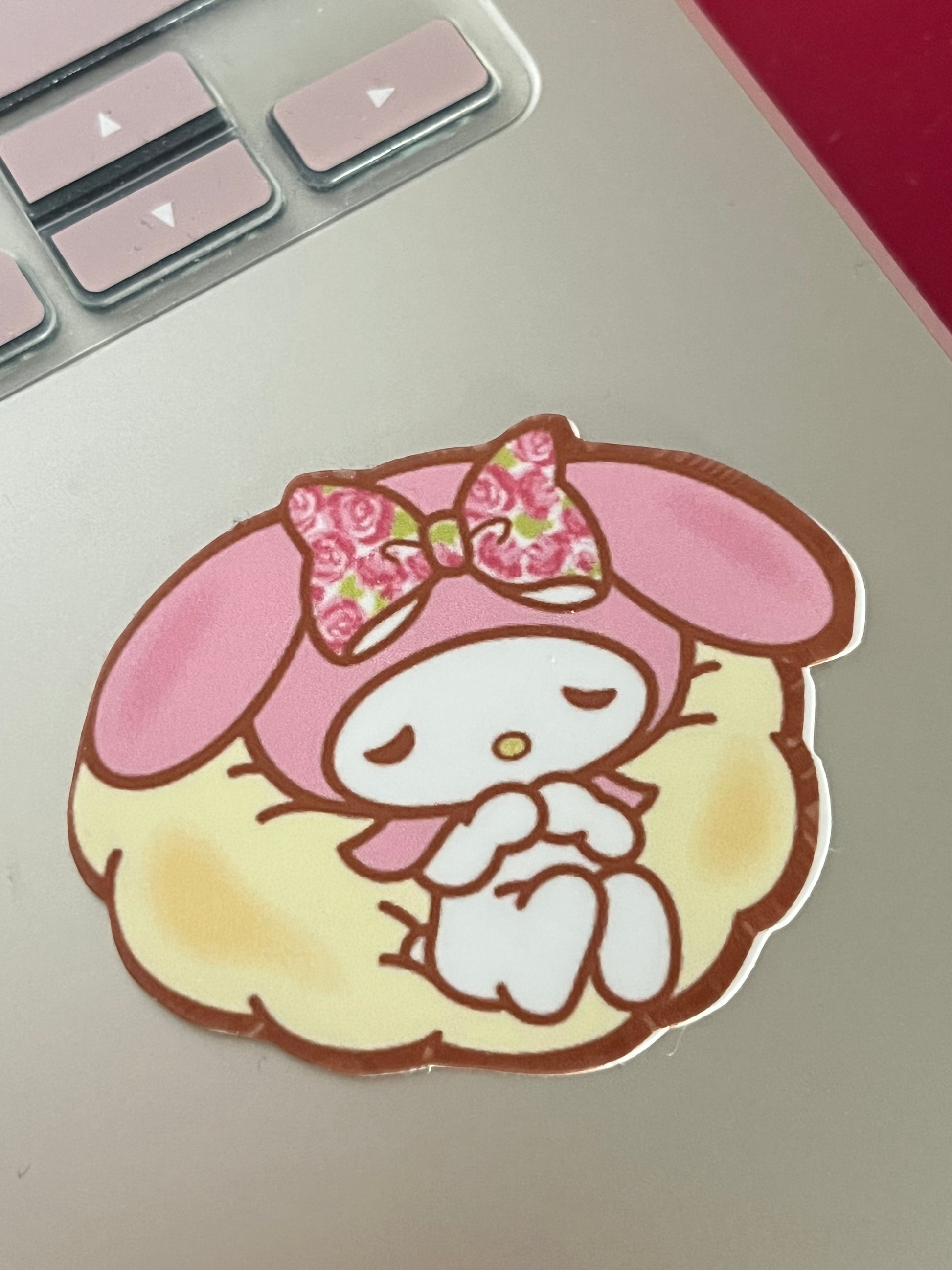 My Melody Sticker is printed on high-quality weatherproof matte sticker paper and laminated for extra coverage for a glossy finish.