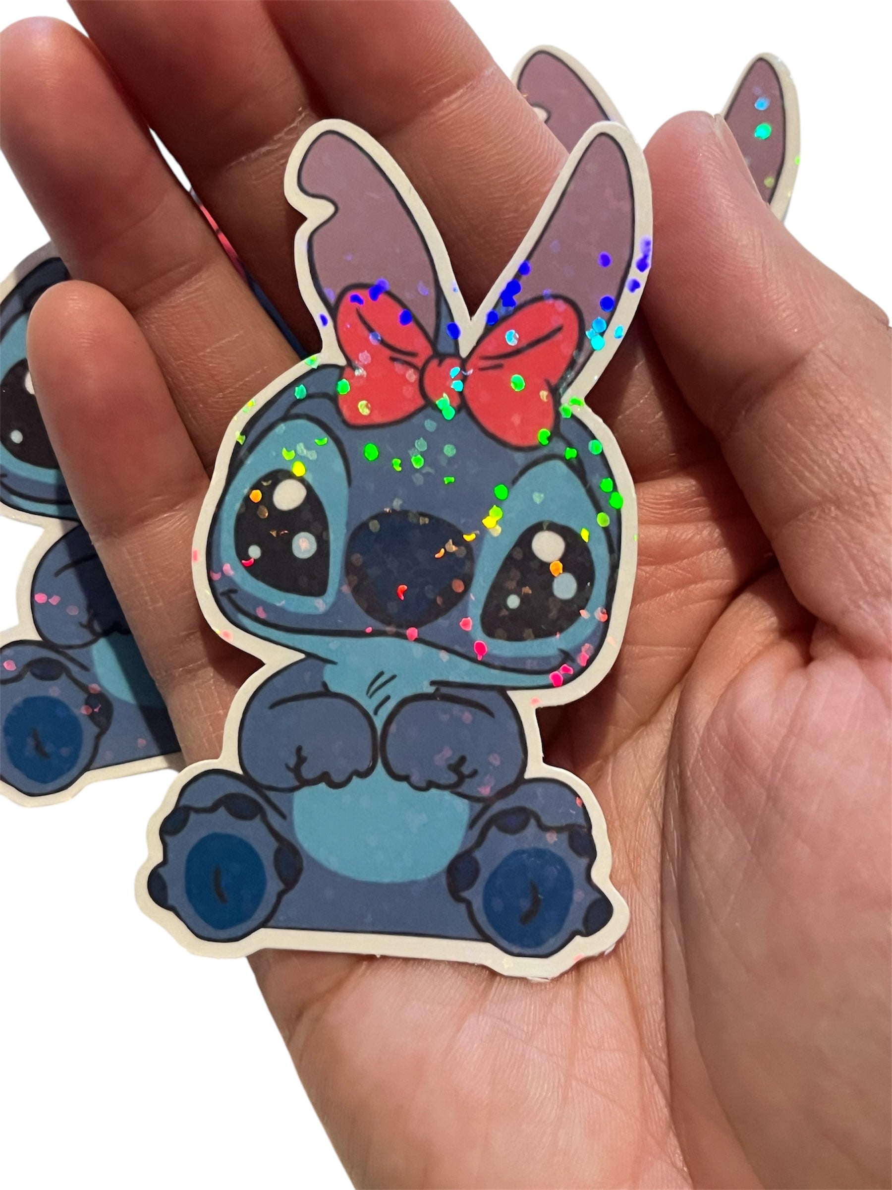 Stitch Easter Egg Sticker is printed on high-quality glossy weatherproof matte sticker paper covered with holographic laminating sheet!
